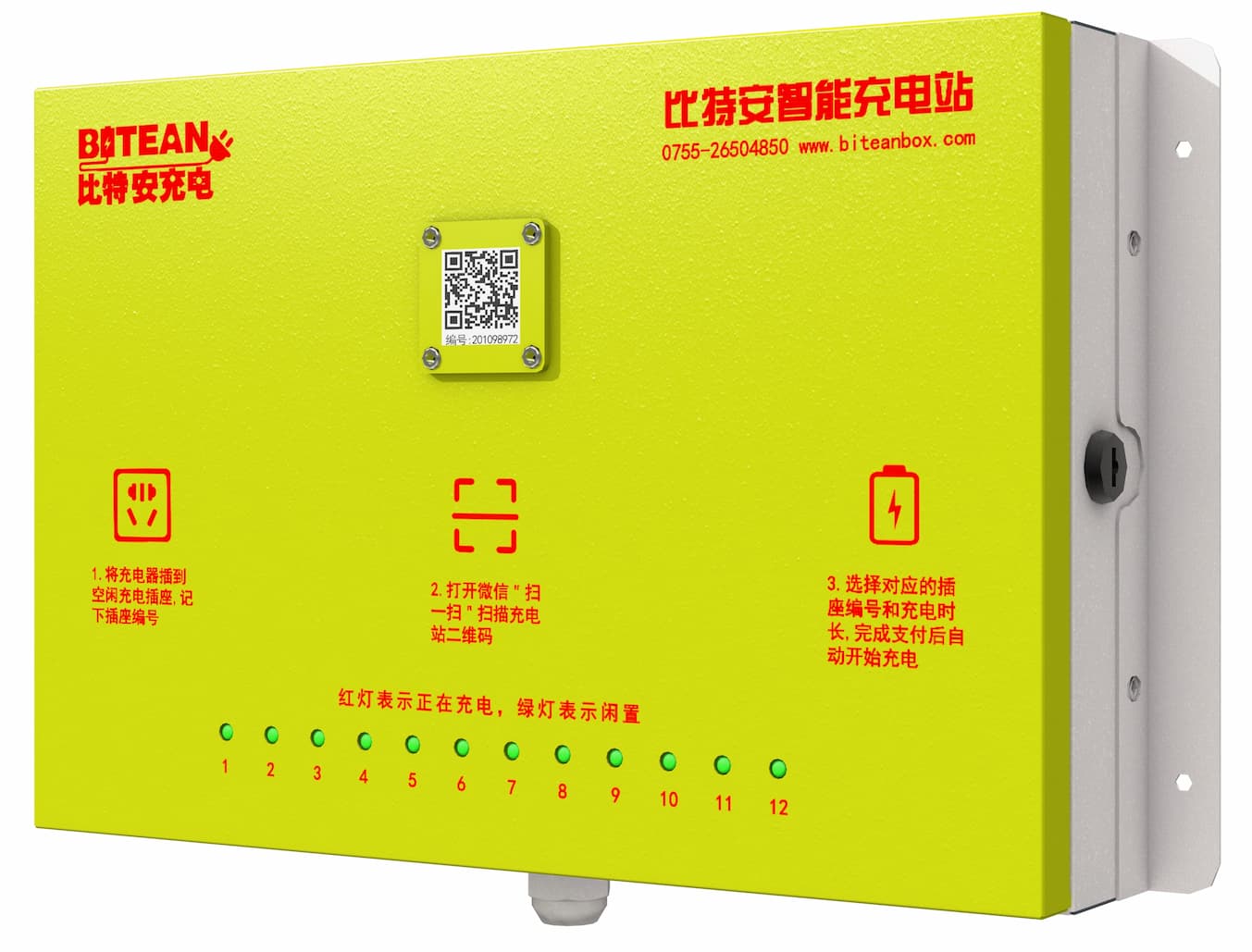 BITEAN charging devices include intelligent battery charging cabinets and intelligent charging stations, which are intelligent charging devices specially developed for the charging needs of low-speed electric vehicles. These type of devices are suitable for slow charging of electric vehicles.They have functions such as scanning code charging, self-stop when full, timed self-stop, intelligent voice, rain and lightning protection, and automatic fault reporting.